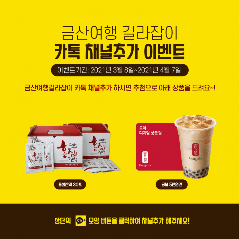 금산여행 길라잡이 카톡 채널추가 이벤트