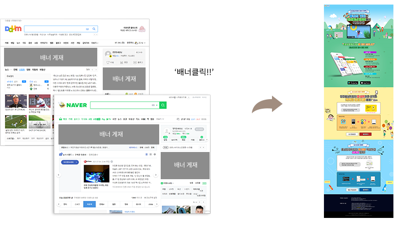 호기심을 유발하는 배너를 클릭하여 랜딩페이지,