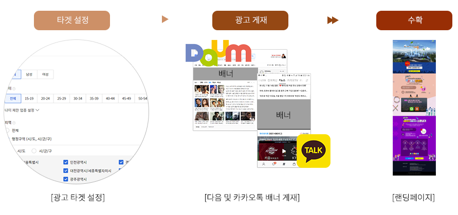 지역/성별/나이 등의 타겟팅을 통해 불필요한 노출을 줄여 보다 효과적인 광고 운영이 가능합니다
