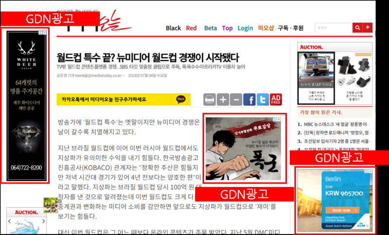 Google Display Network의 약자로 구글과 제휴 된 대형 언론사 사이트에서부터 개인 블로그까지 포함하여