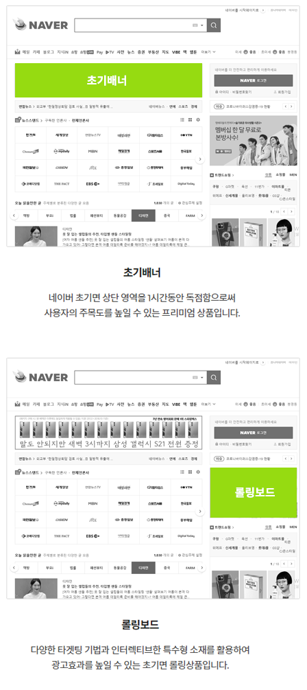 배너광고는 포털사이트 ,언론사 등 유저의 유입이 많은 매체를 대상으로 광고배너를 노출하게 됩니다.