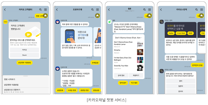 카카오톡 채널을 통해 제공되는 대화형 인터페이스의 챗봇(Chatbot)을 의미합니다.